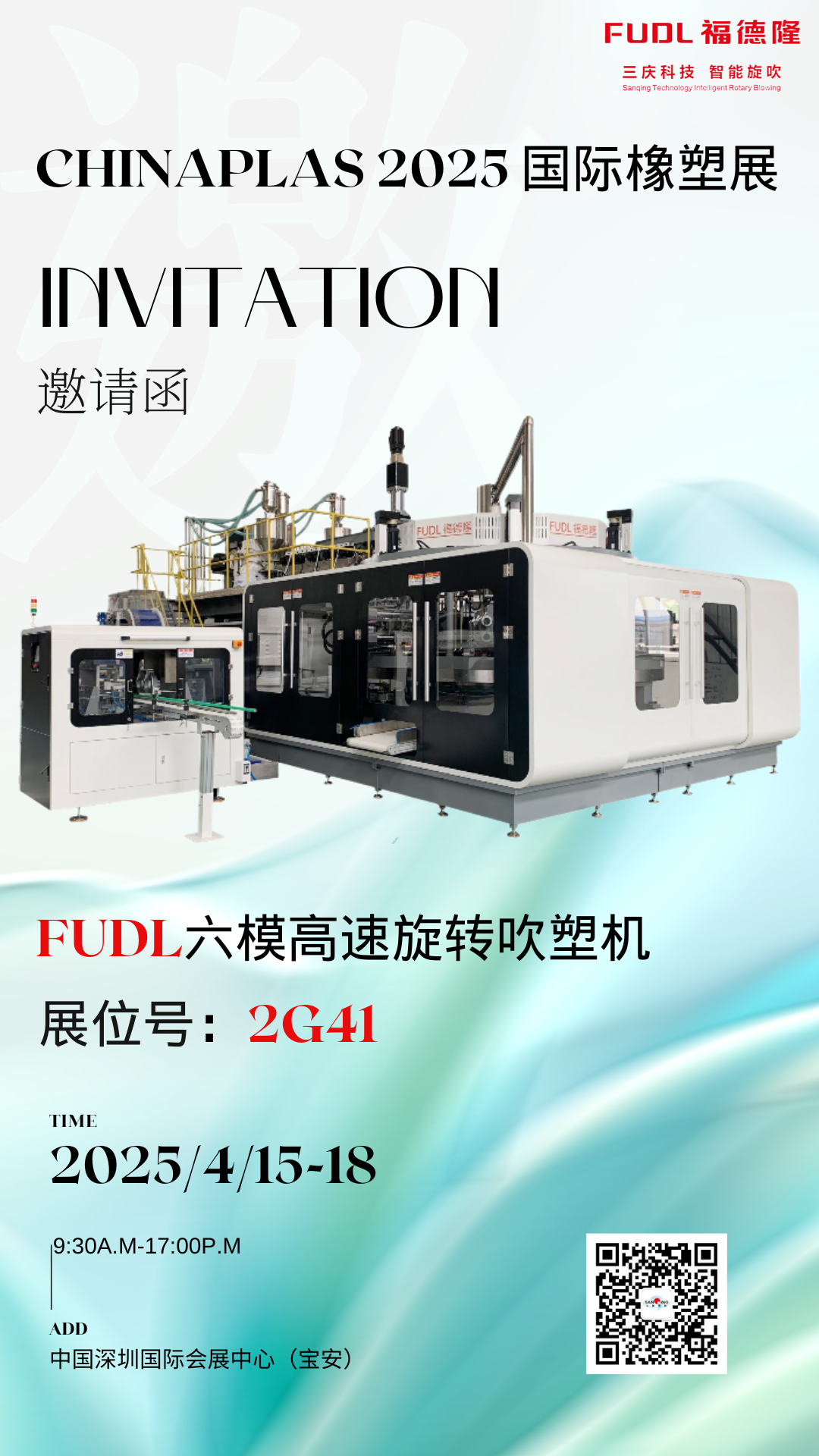 尊敬的行业同仁:2025年国际橡塑展即将盛大启幕,这是一场汇聚全球橡塑行业前沿技术与创新成果的年度盛会。三庆福德隆诚挚邀请您莅临我们的展位,共同探索橡塑领域的无限可能。➩展会名称:CHINAPLAS 2025 国际橡塑展➩展会时间:4月15日-18日➩展会地点:中国●深圳国际会展中心(宝安)➩三庆展位:2G41在本次展会上,三庆将重磅展示明星产品——FUDL六模高速旋转吹塑机,它融合了多项先进技术,具备诸多显著...